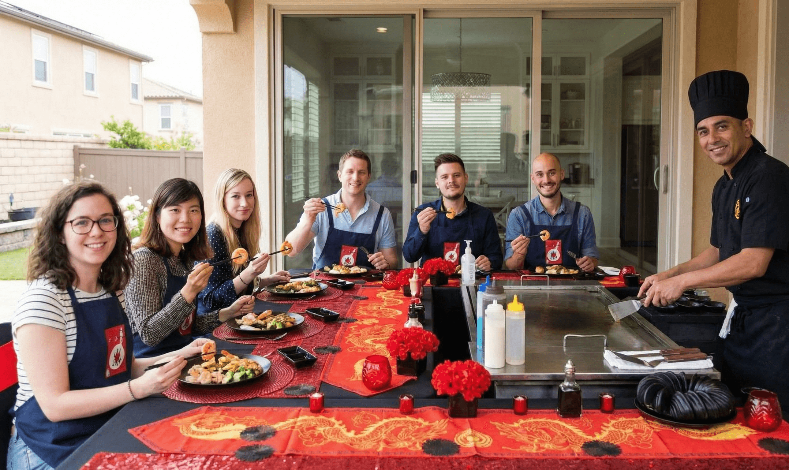 ENJOY THE ULTIMATE HIBACHI PERFORMANCE AND DELICIOUS, FRESH-COOKED FOOD WITHOUT LEAVING YOUR HOME. FROM SETUP TO CLEANUP, WE HANDLE EVERYTHING SO YOU CAN RELAX AND PARTY.