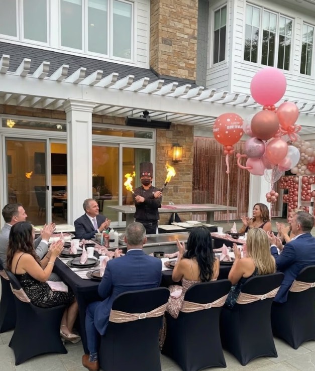Private hibachi dining isn’t just about food—it’s a full sensory experience. From the moment the chef ignites the grill, guests are treated to jaw-dropping knife skills, fiery onion volcanoes, and high-energy cooking performances that keep everyone engaged.